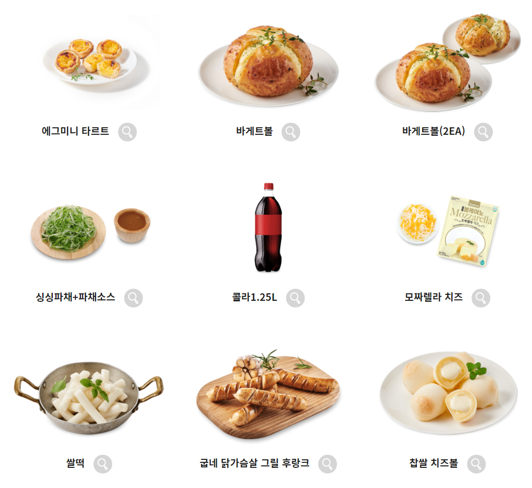 마지막으로 사이드 메뉴를 정리해드리도록 하겠습니다. 에그미니 타르트, 바게트볼, 싱싱파채 파채소스, 콜라, 모짜렐라 치즈, 쌀떡, 닭가슴살 그릴 후랑크, 찹쌀 치즈볼이 보이네요. 저도 치킨을 시킬때면 치즈볼도 함께 먹곤 하는데 굉장히 맛있는 것 같아요.